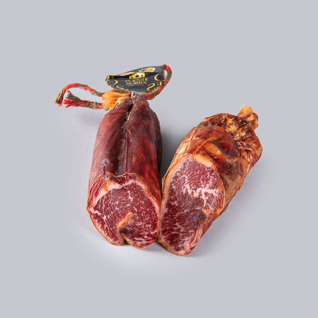 This 100% Iberian Lomito Bellota is the result of a careful breeding of Iberian pigs with a diet based on herbs, wild plants and acorns, which gives it its unique flavour and delicate texture.