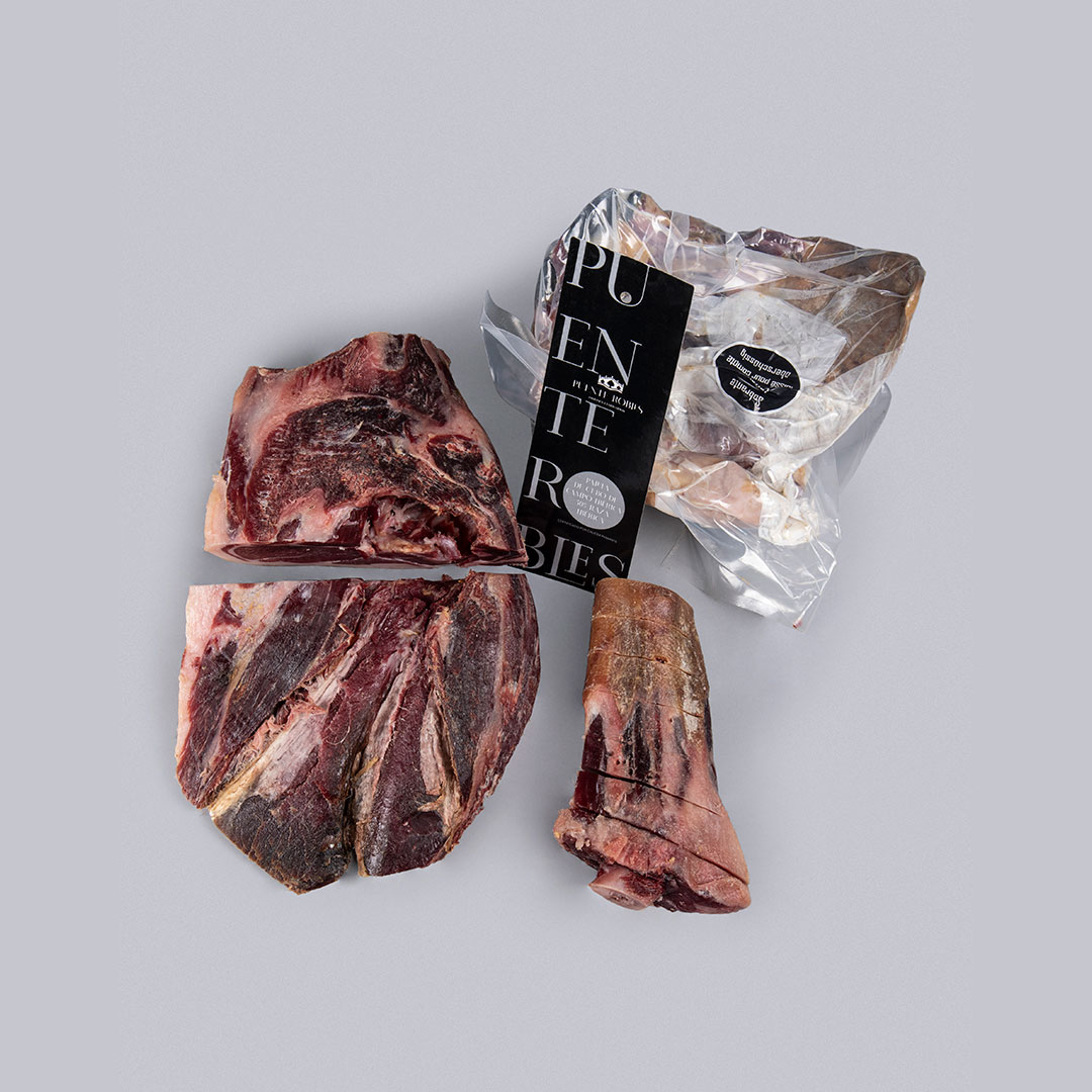Whole pieces weighing between 4 and 7 kg approximately. The total yield is 40%. The delivery includes the knuckle, ham cubes and all usable and edible parts of the vacuum-packed cuts. If you would also like to receive the inedible parts, please ask us to send them to you.