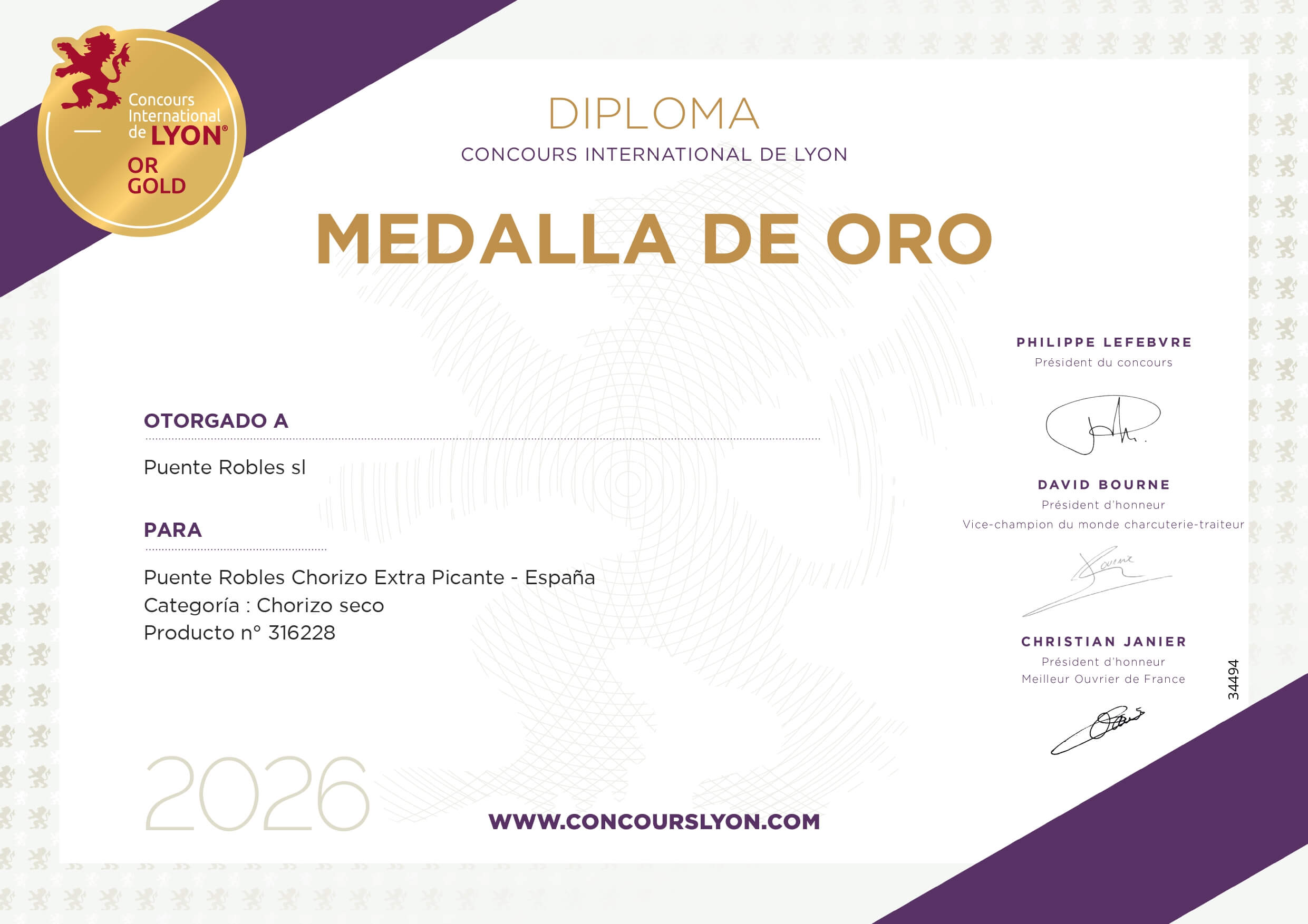 Después del éxito logrado en 2025, el Concours International de Lyon 2026 vuelve a premiar nuestros chorizos, consolidando la esencia que define a la casa: tradición, sabor auténtico y una relación calidad-precio difícil de igualar.