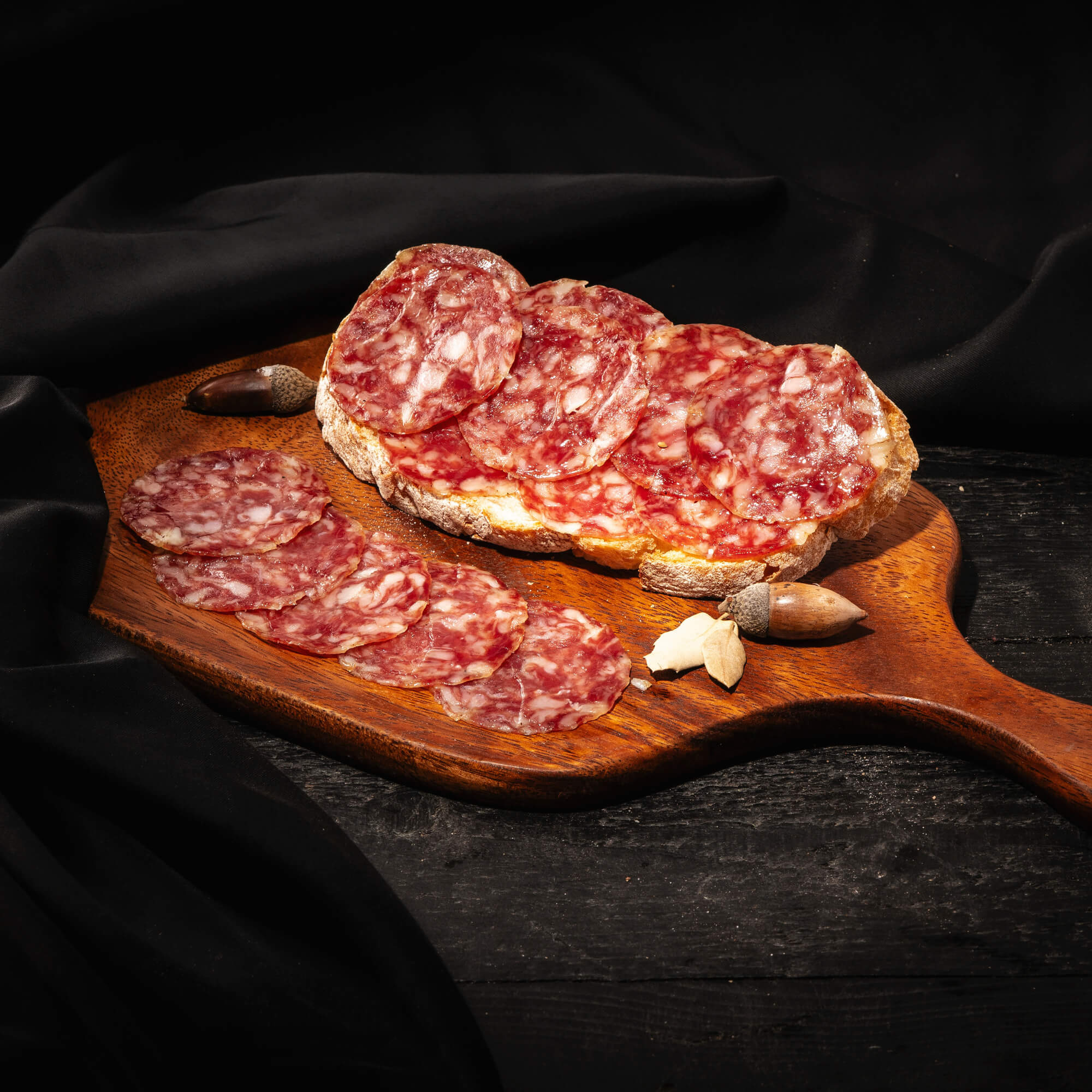 El Salchichón Cular de Bellota se obtiene de cerdos ibéricos criados en ganaderías de Ledesma y los Arribes del Duero.
